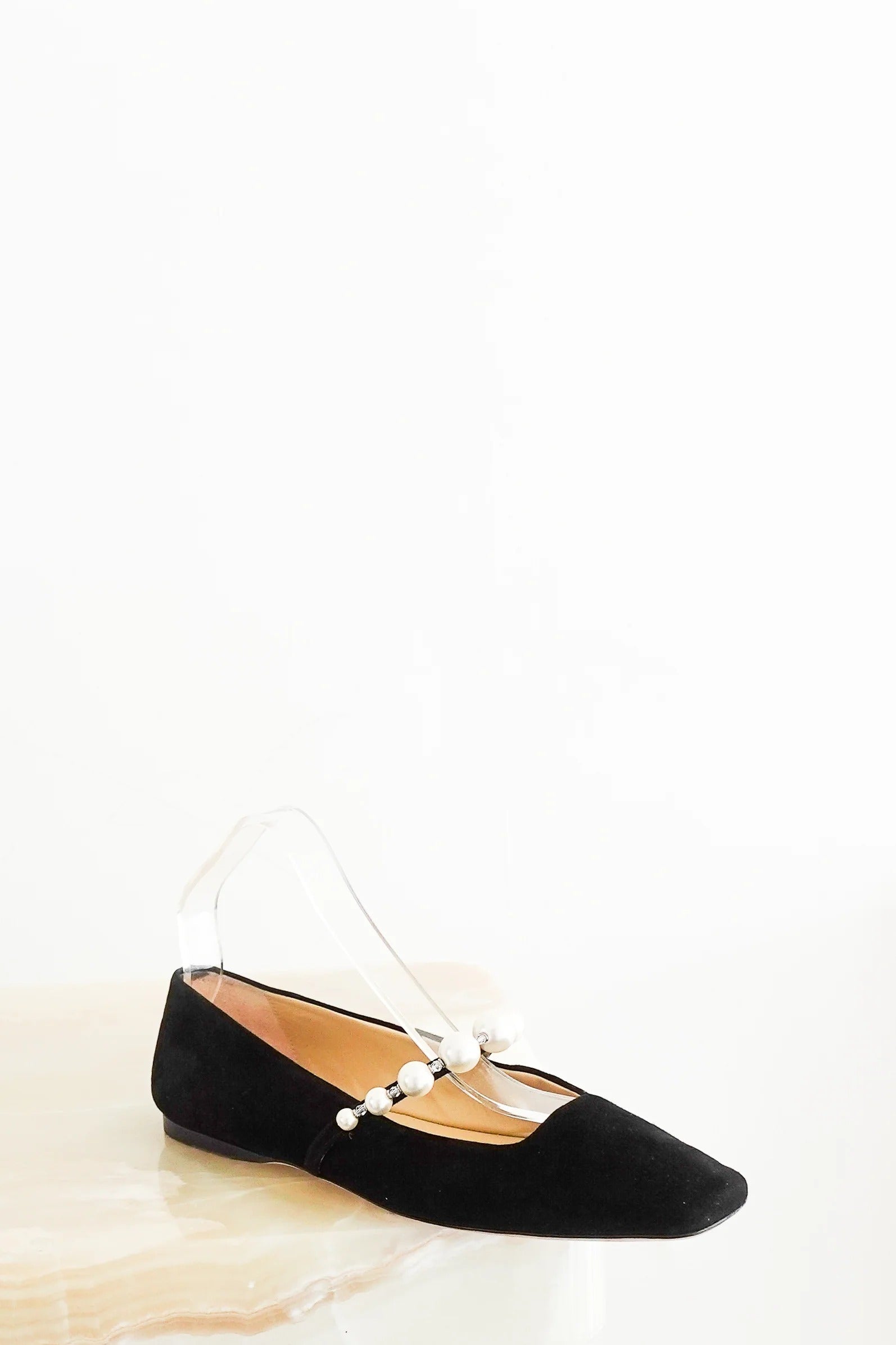 Embellished Black Suede Ballet Flats